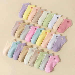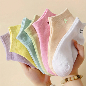 韓国の新しいファッション漫画かわいい女性の靴下キャンディーカラー無地ボートソックス弓夏の靴下メーカー卸売