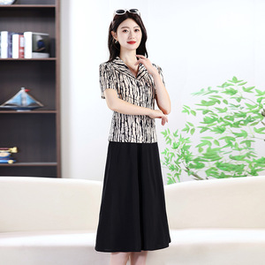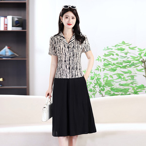 2025 新しいドレス半袖ドレスファッショナブルな新しいプリントストライプ大きいサイズお腹カバー痩身ミドル丈スカート