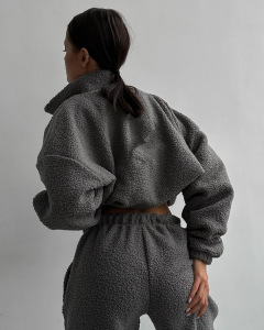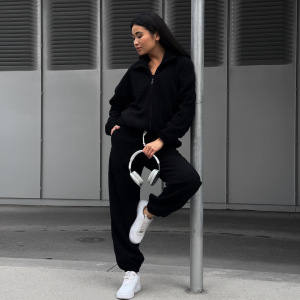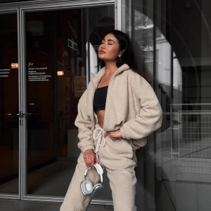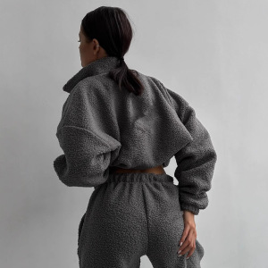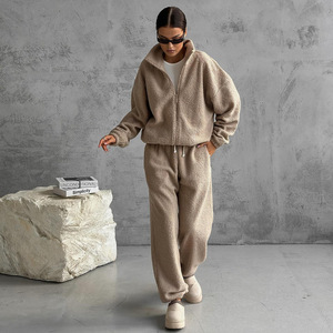 跨境卫衣开衫套装女欧美2025秋冬新款运动休闲摇粒绒开衫卫衣套装