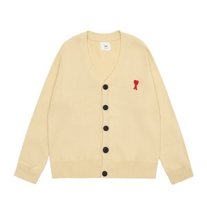 2025新AMl款潮牌提花爱心毛衣外套休闲宽松时尚V领毛衣开衫男女款