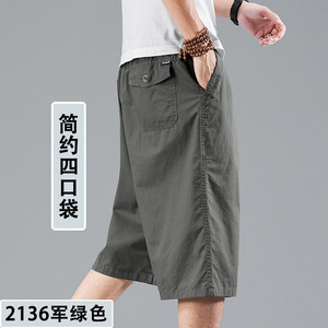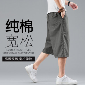 サマーパンツ、純綿クロップドパンツ、メンズカジュアルショーツ、プラスサイズ、ファットマン、ルーズストレートクロスボーダーオーバーオール