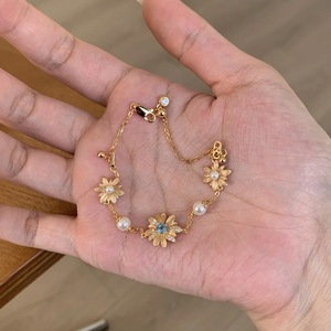 S925 スターリングシルバーデイジーブレスレットひまわり女性の小さな新鮮なパールニッチライト高級ハイエンドの小さな香りのブレスレット
