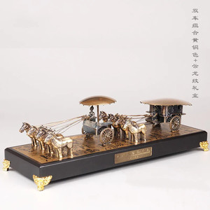 銅の馬車の装飾品、工芸品、中国の特徴的なギフト、西安の兵馬俑記念ギフト、馬車モデル、オフィス∑
