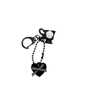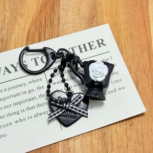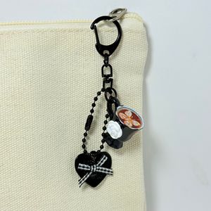 「Chenxi オリジナル」小さな香りのレトロなコーヒーカップラブキーホルダークリエイティブ黒と白のコントラストフラワーハンギングジュエリー