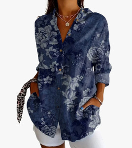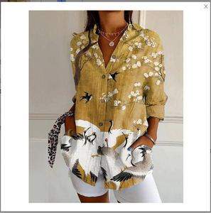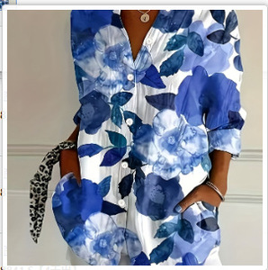 新しい 2025 レディースロングシャツ女性の夏のヨーロッパとアメリカのトレンド長袖シャツプリントパターンプリント 3D シャツ