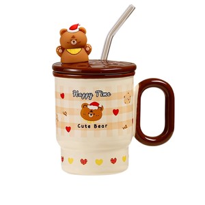 蓋付きセラミックストローカップマグ、見栄えの良いホームオフィスドリンクコーヒーカップ、女の子への誕生日プレゼントとして