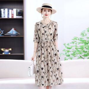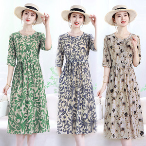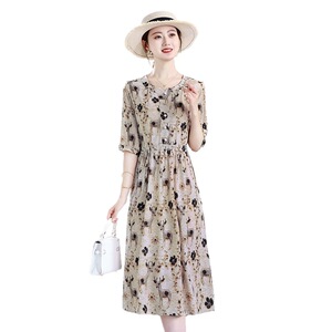 気質、ファッショナブル、年齢軽減、西洋風花柄ウエストドレス、プリントサマースカート、ママ痩身新作婦人服