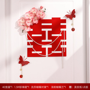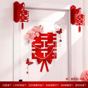 婚房布置套装网红门上喜字门楣女方卧室结婚出阁房间门口门帘装饰