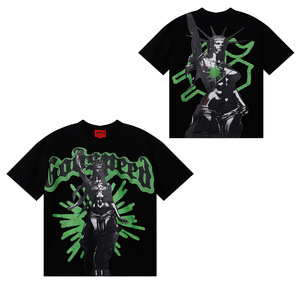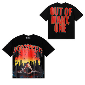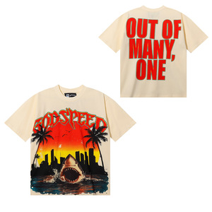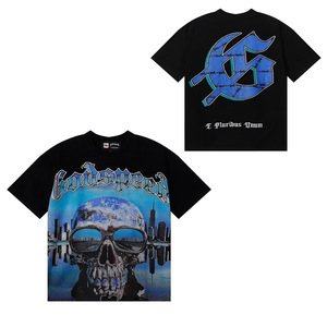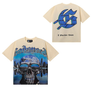 夏新作 Godspeed アメリカのハイストリートファッションブランド スカルロック ペアレタープリント 半袖Tシャツ メンズ