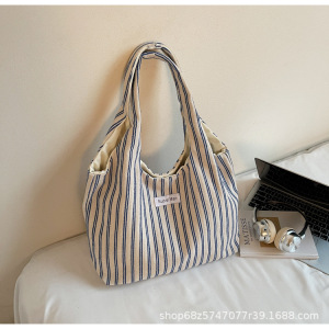 2025新款条纹帆布包大容量学院风单肩包轻便百搭腋下包时尚托特包