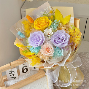 跨境永生花玫瑰花束情人节手提礼盒礼品花束高级感云南保鲜花