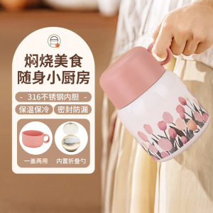 316 ステンレス鋼シチューポット桜チューリップ家庭用弁当箱ポータブル断熱大容量ステンレス鋼魔法瓶カップ