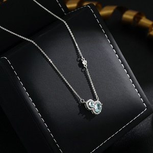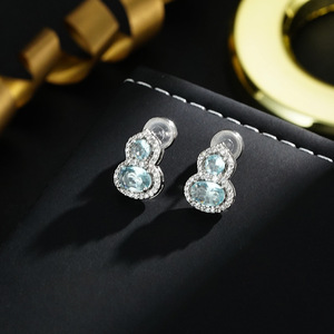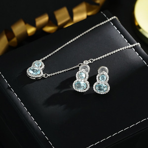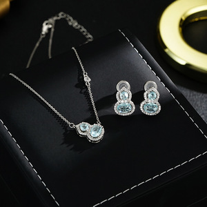 ニッチなデザイン、ハイエンドのジルコン、スパークリングスカイブルーひょうたんイヤリング、ネックレス、ライトラグジュアリーセット卸売
