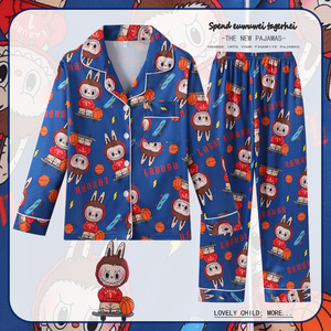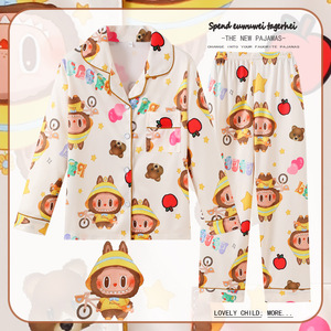 子供パジャマ春と秋の長袖ズボンカーディガンラペル模造綿かわいい漫画カジュアルルーズスーツ男の子と女の子用