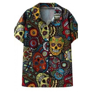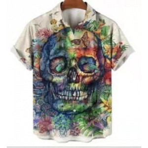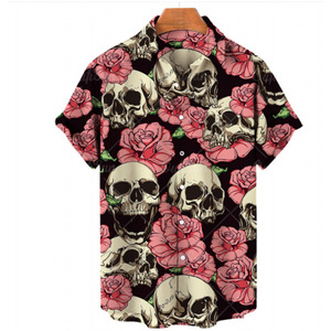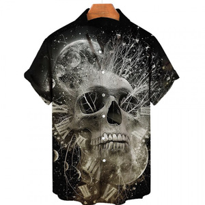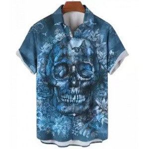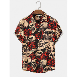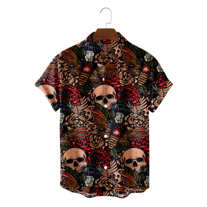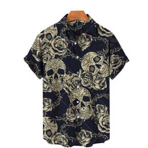 クロスボーダー人気ダークスカルプリントアロハシャツメンズビーチリゾートスタイル速乾性通気性外国貿易