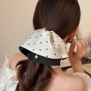 フレンチエレガントサテン水玉スカートポニーテールクリップネットセレブ新作優しいヘアクリップローポニーテールハイエンドクリップ女性用