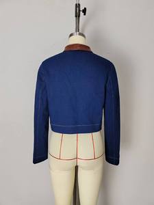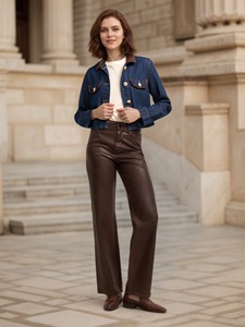 ヨーロッパとアメリカのファッショナブルで絶妙なボタン装飾、レザーカラーとポケットのディテールデザイン、エレガントなイミテーションデニムジャケット
