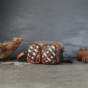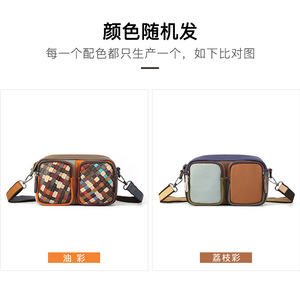 国境を越えた特別な本革織りカラーブロックカメラバッグ大容量マルチカードスロットシングルショルダークロスボディバッグ外国貿易ホットセールモデル女性用
