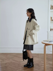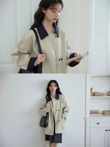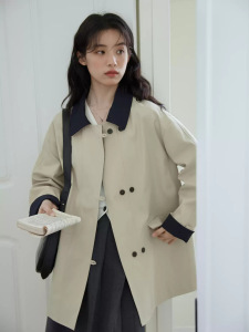 女性のためのハイエンドでエレガントなカジュアルウインドブレーカージャケット 2025 スリムな新しい韓国スタイルのステッチコントラストカラーダブルブレストトップ