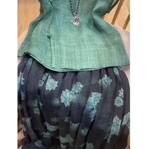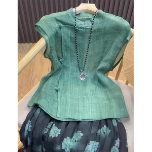 美しい!!見逃せない、デザイン感たっぷり!新しい中国風のリネンシャツレトロボタンノースリーブトップ