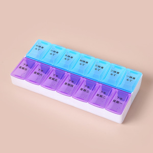 2列パッケージの携帯用小型ピルボックス、1週間分の携帯用大容量ピルボックス、14コンパートメントの蓋付き薬収納ボックス