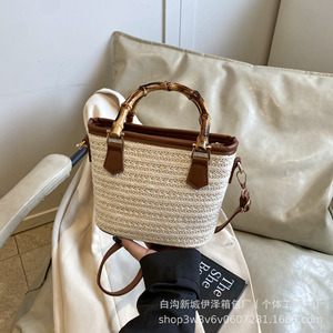 高品質のニッチデザインの竹わらバッグ、新しいファッションで多用途なショルダーハンドバッグ、海辺の休暇ビーチバッグ