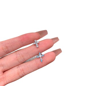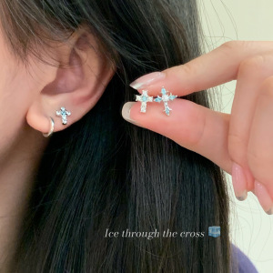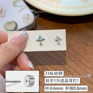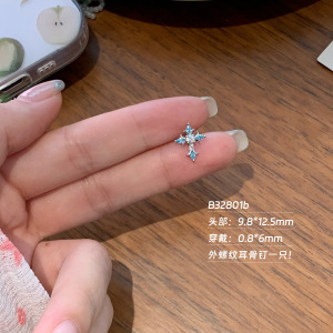 316L チタン鋼銅金メッキアイスブルークロスフラッシュイヤリング新しいユニークなデザインの耳骨ネイルイヤリング