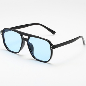 新しいスクエアフレームサングラス、抗UV、インターネットセレブ、レトロゼリーカラー、オーシャンピース、ダブルビーム、ライスネイル、パイロットサングラス