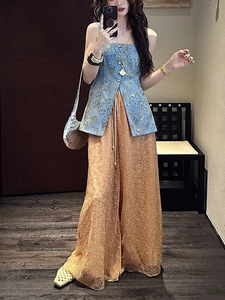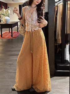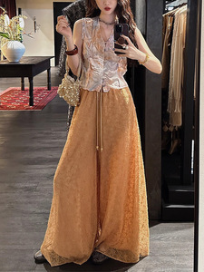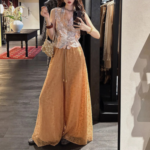 [Zhaozhao] 新しい中国風ビーズロープ刺繍ワイドレッグパンツ女性の夏薄いスタイル 2025 新しいトレンド