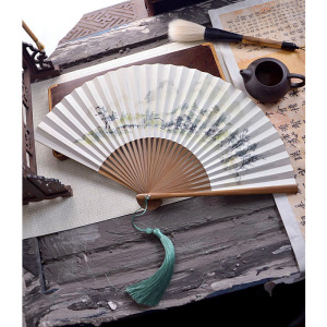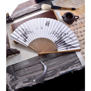 8寸双面串纸扇+双穗流苏米30根扇骨_工艺扇