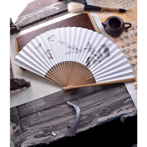 中国风30方8寸毛全本素面白色纸扇可双面素面串男士素面折扇子
