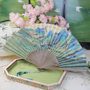 8寸印花-松山访友-无流苏30根扇骨_工艺扇