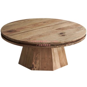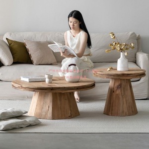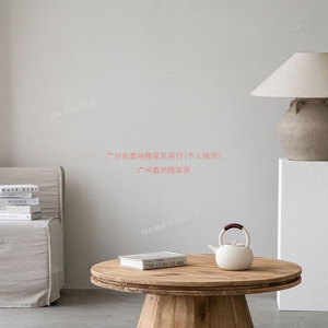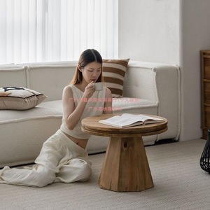 复古圆形实木组合茶几松木大小圆桌客厅子母矮桌
