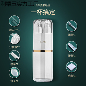トラベルウォッシュカップと歯ブラシの3点セット、スリーインワンウォッシュ収納ボックス、トラベルセット、ポータブルコンパクト歯ブラシカップ