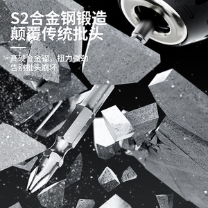D2双截棍十字批头强磁防滑带锯齿六角柄手电钻披头加长电动螺丝刀
