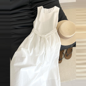 シンプルでエレガントな白いノースリーブベストドレス女性のための夏の2025新しいハイエンドフレンチスタイルロングスカート