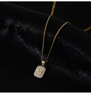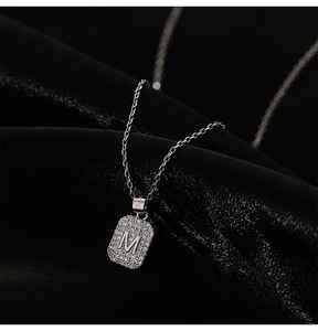 アルファベットMタグネックレス レディース キラキラ輝く長方形の文字組み合わせ ライトラグジュアリー 個性的で上品な高級感のある鎖骨チェーンネックレス