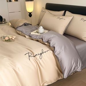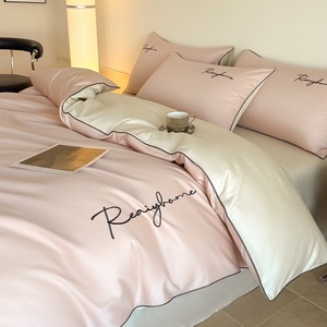 轻奢120支新疆长绒棉四件套全棉刺绣被套纯棉裸睡床单床笠款床品4