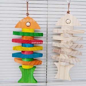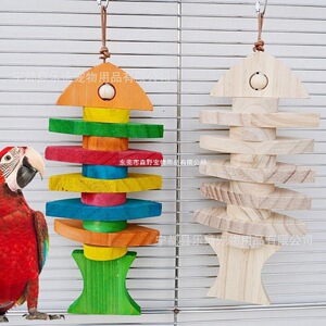 中型および大型のオウムの噛むおもちゃ、退屈を和らげる魚の形をした木製ブロック、大きな鳥かごのストレス解消用品卸売