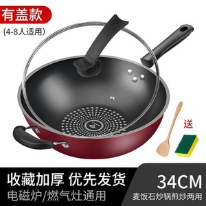 レッドスタークリスタルダイヤモンドノンスティック中華鍋ノンスティックパンノンオイルお手入れ簡単ユニバーサル中華鍋メーカー卸売