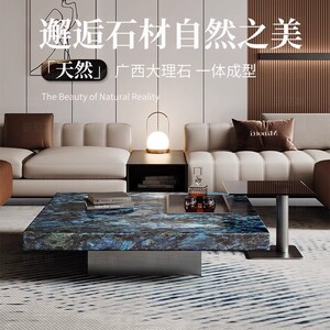 ブルー翡翠大理石コーヒーテーブルイタリアンライト高級モダンハイエンドリビングルームホームスクエアミニマリストロックプレート2025新しい