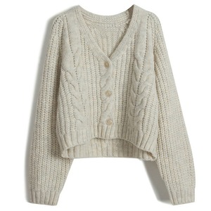 2025新款秋季时尚麻花纯色针织开衫女毛衣短款上衣宽松针织衫粗针