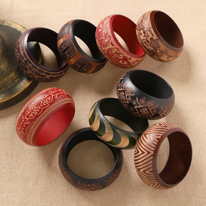 レトロな幅広彫刻木製ブレスレット、新しい中国風ニッチスタイルエスニックスタイルブレスレット、戦国ローブ、古代スタイルの女性アクセサリー