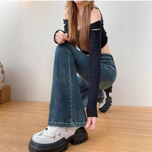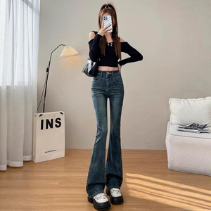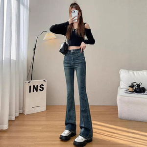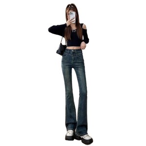 ファンシーユ レトロ風 マイクロフレアデニムパンツ レディース 2025年秋新作 裏起毛 ハイウエスト 細見え フレアロングパンツ