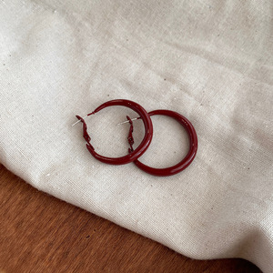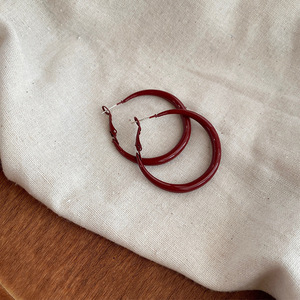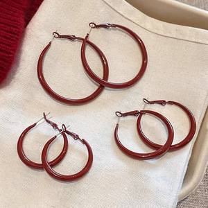 レトロな香港スタイルのアンコラレッドサークルイヤリング、プレーンサークルイヤリング、女性用ハイエンドイヤリング、ファッショナブルで軽い高級イヤリング