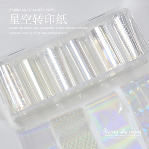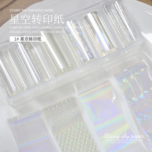 美甲玻璃彩糖转印纸幻彩人鱼偏光五角星星七彩镭射极光指甲星空纸