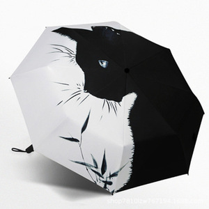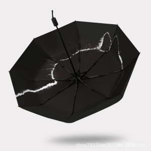 クロスボーダー猫影傘女性用晴雨兼用傘折りたたみ全自動傘日焼け止めとUV保護厚みのあるビニール