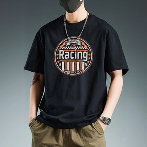纯棉短袖t恤男2025夏季潮牌印花大码宽松美式重磅打底衫