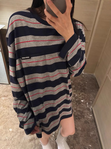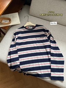 MIU シリーズ深セン南油ハイエンド婦人服 2025 夏カジュアル多用途ストライプレターパッチセータートップ