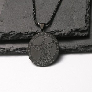 亚马逊热销不锈钢圣迈克尔大教堂女子奖章项链小众设计感吊坠批发